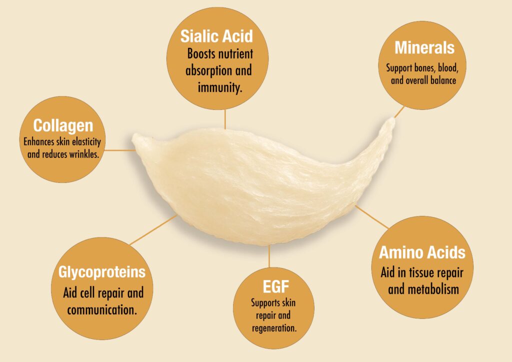 During sleep, our bodies enter a state of repair and regeneration. This is when cellular repair, tissue regeneration, and hormone regulation are at their peak. Consuming bird’s nest before bed allows its rich nutrients, including glycoproteins, amino acids, and minerals, to be optimally absorbed and utilized by your body as it focuses on these restorative processes. It’s like giving your body premium building blocks precisely when it needs them most.